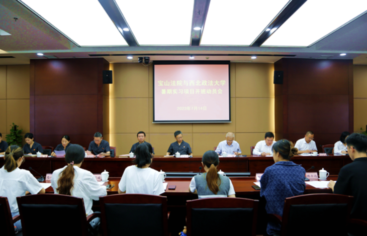 与宝山法院暑期实习项目开班动员会在上海举行。校党委委员、副校长王健,宝山法院党组书记、院长张晓立出席动员会并讲话。法院其他班子成员、业务庭负责人、带教法官代表,经济法(知识产权)成人直播