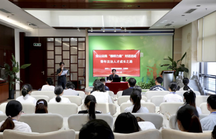14日下午,举办了“榜样力量”对话交流活动。活动由宝山法院政治部副主任颜燕蓉主持。活动邀请全国优秀法官、全国法院先进个人、上海市巾帼建功标兵、宝山法院审监庭庭长王国侠向实习生讲述青年法治人才的成长之路。她结合亲身经历分析了自我学习、目标管理、团队意识、合作精神等方面在个人成长和职业发展过程中的重要性,强调了要坚持用目标引领成长,树立“成长型”思维,准确把握成长方向,积极开拓成长渠道,为职业成长奠定好扎实基础。