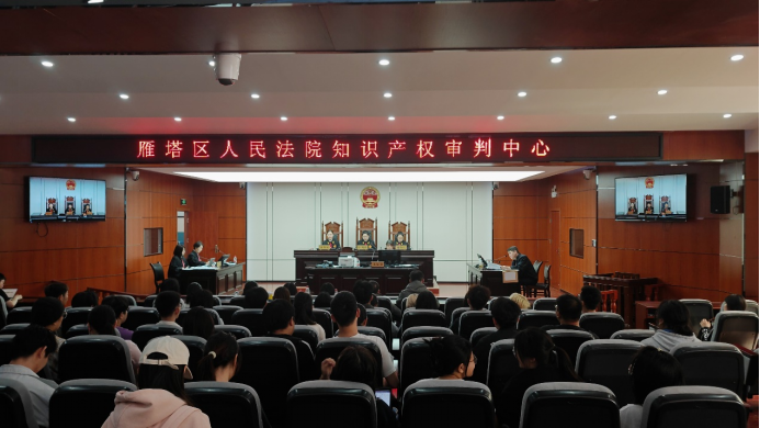 在2025年“全国知识产权宣传周”来临之际,为丰富学生实践教学,深化知识产权保护宣传,西安市雁塔区人民法院知识产权审判中心于4月23日上午在我校长安校区丰瑞模拟法庭(天平楼A座AJ14教室)公开开庭审理一起侵害知识产权商标权纠纷案。本次校内开庭由教务处和成人直播