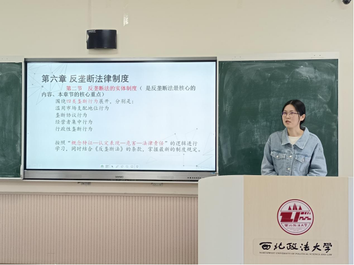 试讲环节中,胡瀚月、刘春池两位教师,分别围绕《经济法学概论》《中国环境法学》两门课程,完成20分钟规范试讲展示。