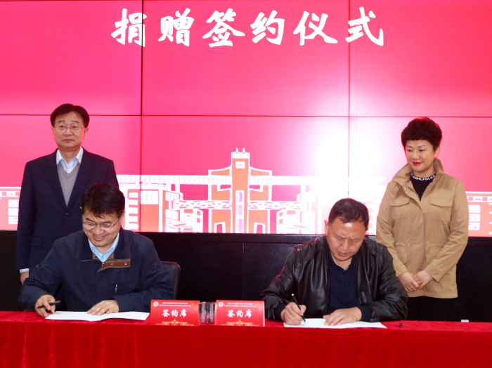 世纪盛康公司董事长吴芳女士热情致辞,祝贺我校85岁诞辰,并希望今后加强交流合作。副校长张荣刚教授主持仪式并与我校1980级校友、世纪盛康公司总经理舒满平共同签署了捐赠协议。