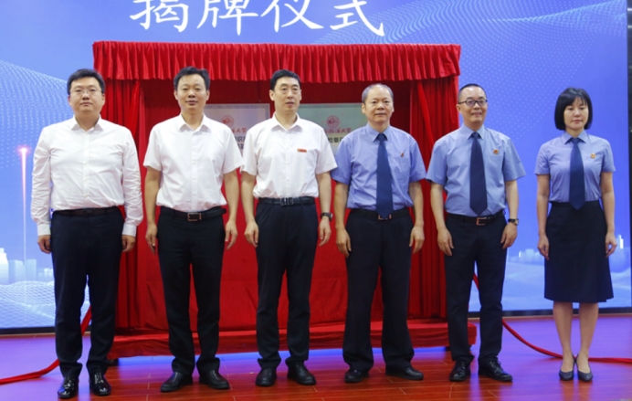 与会领导为“光明科学城知识产权保护服务实践基地”、“知识产权检察研究基地”揭牌。