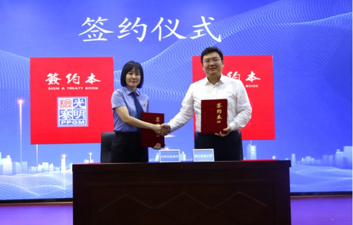 院长倪楠与光明区检察院副检察长吴艳妮代表校检双方共同签署合作协议。