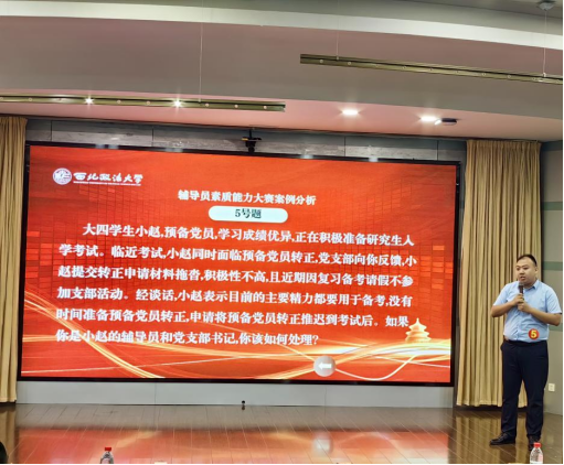 第七届辅导员素质能力大赛决赛在长安校区举办。成人直播辅导员张兴浩老师经过初赛基础知识测试环节比拼,连续两届比赛闯入决赛。经过激烈角逐,张兴浩老师最终获得二等奖。