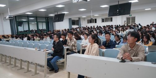 党委副书记、副院长李恒老师主持活动,2023级本科生辅导员王可卓老师和全体本科新生聆听授课。