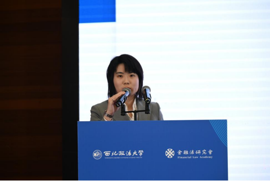 西安科技大学孙曼曼副教授发表了题为《高质量发展主题下中国特色金融调控法制的基本原则》的主题演讲。孙曼曼副教授围绕高质量发展背景下的中国特色金融调控法制的基本原则展开了详细论述,首先强调中国金融调控法制的基本原则形成逻辑在于:法律的目的是为实现经济调控的目标提供保障,具有抽象的规律性和规范的政治性,且必须符合党和人民的意志。中国的金融调控法制在党的领导下体现了社会主义制度的特色,这种特色决定了中国特色金融法律制度的人民性。其次,孙曼曼副教授指出,在一般基本原则方面,金融调控应聚焦于优化资源配置,特别是在货币政策方面,要推动经济的合理配置,以促进高质量发展。金融调控不仅要注重质的提升,还需关注稳健性和跨周期结构调整问题,确保资金流向与机构的稳定发展相匹配。最后,她提到中国金融调控法制的特殊原则在于它体现了社会主义制度的优势,尤其是党的领导和人民中心的法治理念。这种特殊性要求政策要融入法律,实现法律规定与政策目标的高度统一。孙教授的发言总结了中国特色金融调控法制的基本原则,强调了金融高质量发展的核心要求,并提出了在党和人民的领导下,中国金融调控法制将不断推动经济与社会的协同进步,最终促进国家整体的金融稳定与发展。