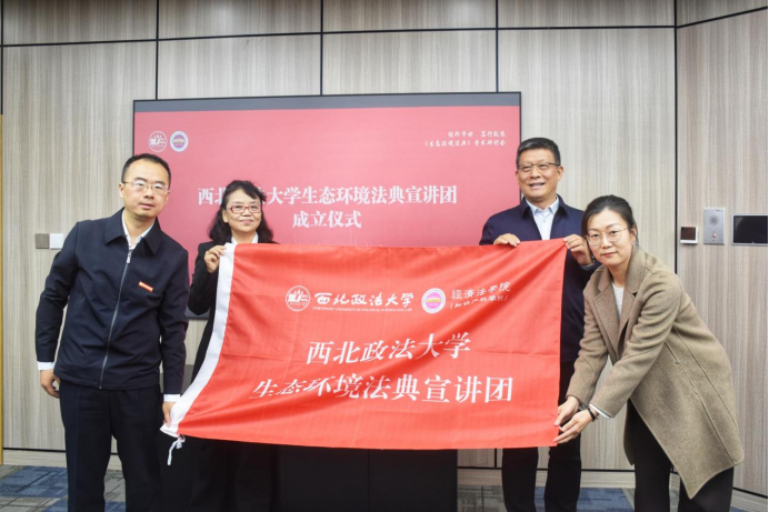 党委书记赵万东为西北政法大学生态环境法典宣讲团授旗。