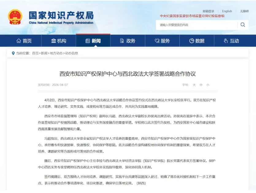 4月2日,西安市知识产权保护中心与成人直播 战略合作协议签约仪式在成人直播 长安校区举行。双方在知识产权人才培养、理论研究、实务实践、成果转化等方面达成合作,并共同为实践基地揭牌。