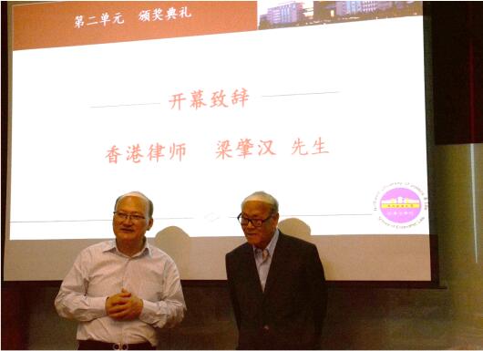 颁奖活动结束后首先由奖项基金发起设立者梁肇汉先生致辞。梁老先生表示,希望同学们能够爱国爱校,饮水思源,将来如果有机会要贡献祖国,回报母校。