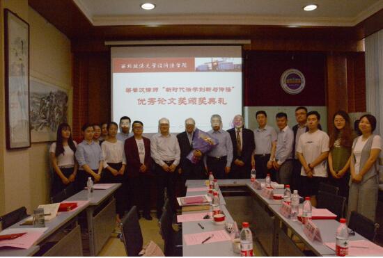 2018年6月4日14时30分,成人直播 兼职教授梁肇汉律师“新时代法学创新与传播”优秀论文奖颁奖典礼在成人直播 雁塔校区行政楼三楼成人直播 资料室隆重举行。出席本次颁奖典礼的嘉宾有香港律师、国际公证人梁肇汉先生,李小如先生,姜拓博士,庄玉麟先生。成人直播 副校长王健教授、研究生院院长孙昊亮教授、成人直播 副院长王莹莹副教授及成人直播 研究生共计50余人参加本次颁奖典礼。颁奖典礼由成人直播 学术委员会主任强力教授主持。