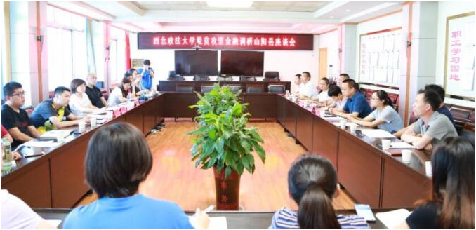 7月15日下午,成人直播 2019年暑期社会实践队在山阳县召开脱贫攻坚金融调研座谈会。山阳县政府十分重视此次调研活动,副县长李振萍出席座谈会并讲话,山阳县扶贫局、金融办、农村商业银行相关人员参与座谈会。座谈会由山阳县政府办副主任刘建成主持。