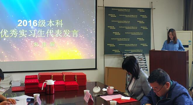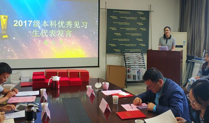 之后由院党委副书记李慧军老师宣读表彰决定。院党委书记李建梅老师、倪楠副院长、王莹莹副院长为优秀实习实训生、优秀见习生及优秀带队教师颁奖。 2017级研究生王珂欣、2016级本科生宋佳颖、2017级本科生蔡沁洋同学分别代表优秀实训生、优秀实习生、优秀见习生进行发言。