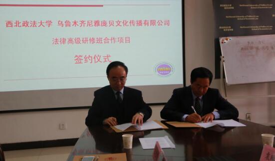新疆校友会会长张伟民表示各届校友对于母校都十分愿意提供力所能及的帮助,肯定学校及成人直播 对于校友工作的重视,并且希望将来与成人直播 就“一带一路”沿线相关法律实务问题进行进一步探讨,协助学校为学生搭建实务教育的平台。随后,成人直播 义海忠院长与新疆校友会会长及乌鲁木齐尼雅庞贝文化传播有限公司负责人签署合作协议。