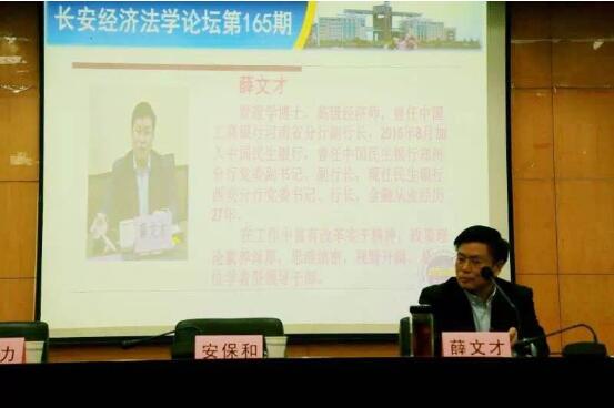 2018年10月16日19时30分,长安经济法学论坛第一百六十五期在成人直播 雁塔校区研究生综合楼四楼报告厅如期举行。本次论坛特邀民生银行西安分行党委书记、行长,高级经济师薛文才博士做《现代金融体系及其变革方向》的主题讲座。