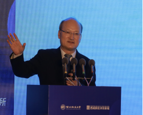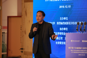 和沣东新城的邀请以及主办方的周到照顾。强力教授在致辞中表示在本次为期一天的会议中,各位专家学者根据当前国际社会、中国社会和两岸发展过程中的核心问题——数字化经济,具体就区块链经济与金融、人工智能和金融发展问题、区域金融安全以及地方金融立法问题进行了深入探讨,极具参与性和互动性的观点交流为之后数字化经济的发展提供了新思路、新方向。并再次对各位远道而来的专家学者、沣东新城管委会、各协办单位以及提供服务的的各位同学表示感谢。
