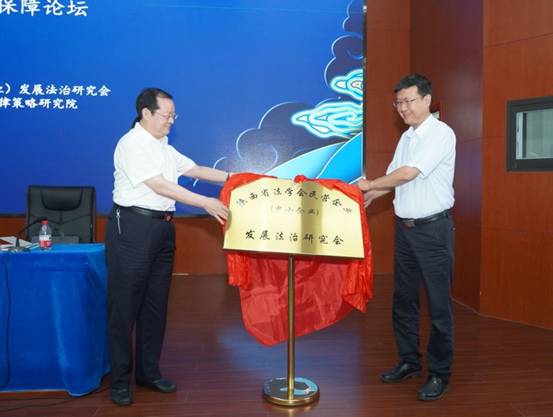 陕西省委政法委副书记、秘书长黄超和成人直播 党委副书记郭武军为研究会揭牌。