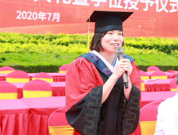 倪楠宣布关于授予成人直播 2020届285位毕业生法学学士学位的决定。在台前就坐的每位院领导及老师为现场的毕业生们扶正流苏,合影留念,并为毕业生送祝福、送期盼,共话师生情、同学情。