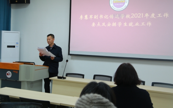 党委副书记李慧军传达了2021年度学校工作要点以及3月16日学校就业工作会议精神,并对2021届毕业生目前就业情况做了重点汇报,动员广大导师主动关怀学生,积极参与到学生就业工作中,调整学生就业心理预期,为学生提供就业引导和资源,确保完成今年的就业目标。