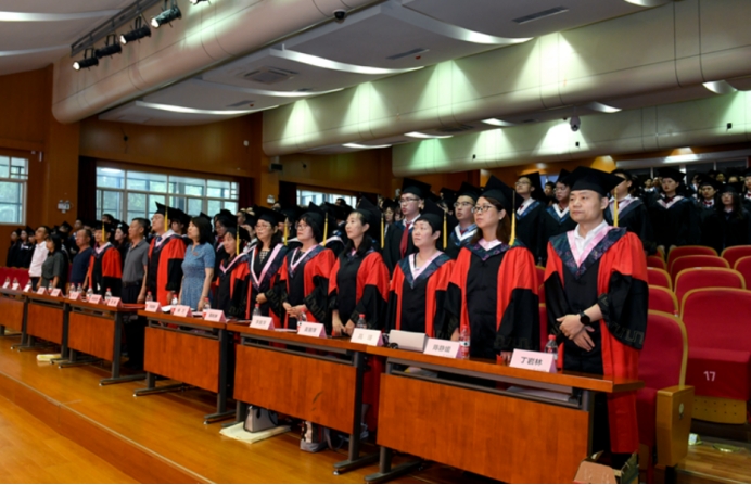 全体师生起立,在庄严的国歌声中,学位授予仪式正式拉开帷幕。