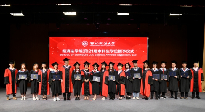2021届本科毕业生授予学位仪式在长安校区满天星报告厅隆重举行。院党委书记李建梅,党委副书记、院长倪楠,院党委副书记、副院长李慧军、副院长薛亮、团委书记王文,教师代表杨巧教授、韩利琳教授、陈静媛副教授、李雅萍副教授、吴丽萍副教授、高瑾副教授、丁岩林副教授、朱时敏老师,毕业班辅导员王栋良、吕莎、李冬冬老师,2021届毕业生参加学位授予仪式。仪式由薛亮主持。