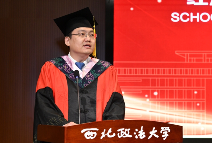 全体师生向毕业生表达热烈祝贺与真诚祝福。他指出,一百年来,中国共产党团结带领中国人民,以“为有牺牲多壮志,敢教日月换新天”的大无畏气概,书写了中华民族几千年历史上最辉宏的史诗。希望广大毕业生能够做一个有胸怀的人,爱党、爱国、爱中国特色社会主义制度,做一个不断学习的人,拒绝躺平,笑看内卷,不要丢掉奋斗的勇气,以实现中华民族伟大复兴为己任,增强做中国人的志气、骨气、底气,不负时代,不负韶华,不负党和人民的殷切期望!