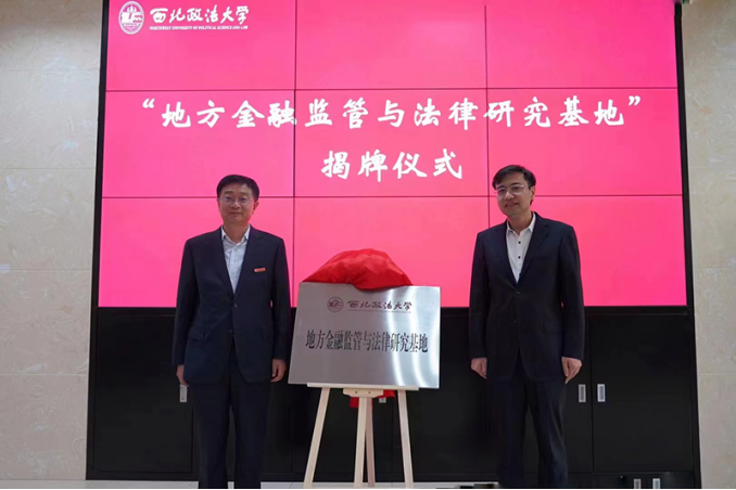 签约仪式上,张荣辉与张荣刚签署合作协议,苏虎超、孙国华、范九利见证签约。随后,苏虎超与范九利为“地方金融监管与法律研究基地”揭牌。