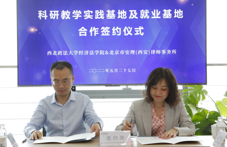 )与北京安理律师事务所西安办公室在律所党建室举办共建科研教学实践基地和就业基地签约仪式。