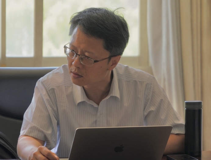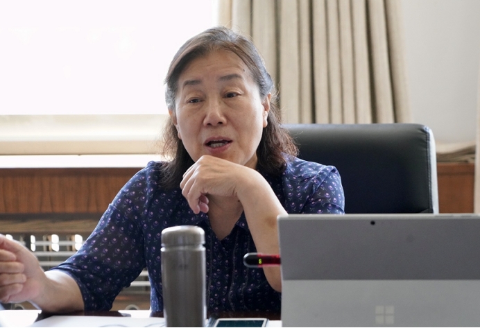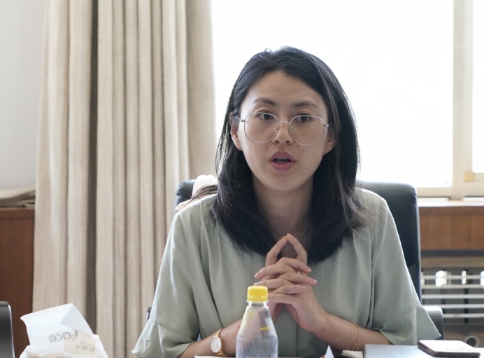 )院长倪楠汇报了“十三五期间”知识产权法学科整体发展情况,重点介绍了该学科在教学、科研方面取得的成绩,同时,客观分析了“十四五期间”学科发展的困境和重点难点。