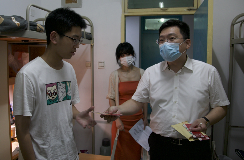 党委书记李建梅、院长倪楠、党委副书记李慧军、院办公室以及辅导员分别前往10号、12号学生公寓开展中秋慰问活动,为2022级新生送去祝福和关怀。