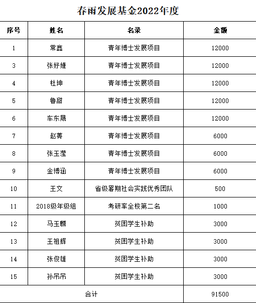 成人直播 春雨发展基金管理委员会根据《成人直播 “春雨”发展基金使用及管理办法》的相关规定,于2022年12月15日召开了2022年度春雨发展基金评选会。经会议研究决定拟对14个个人与团队进行奖励与补助。现公示如下: