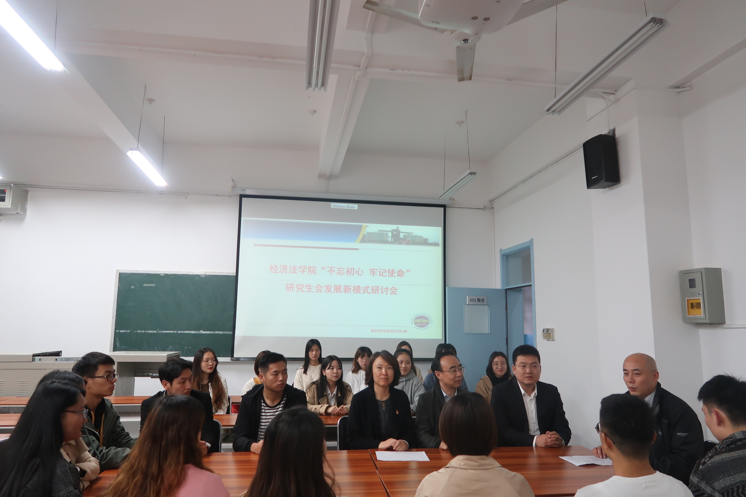 10月16晚,成人直播 在雁塔校区召开了以“不忘初心、牢记使命”为主题的研究生会发展新模式研讨会,成人直播 党委书记李建梅、院长义海忠、副院长倪楠和成人直播 研究生会全体同学参加了研讨,蔡奇轩老师主持会议。
