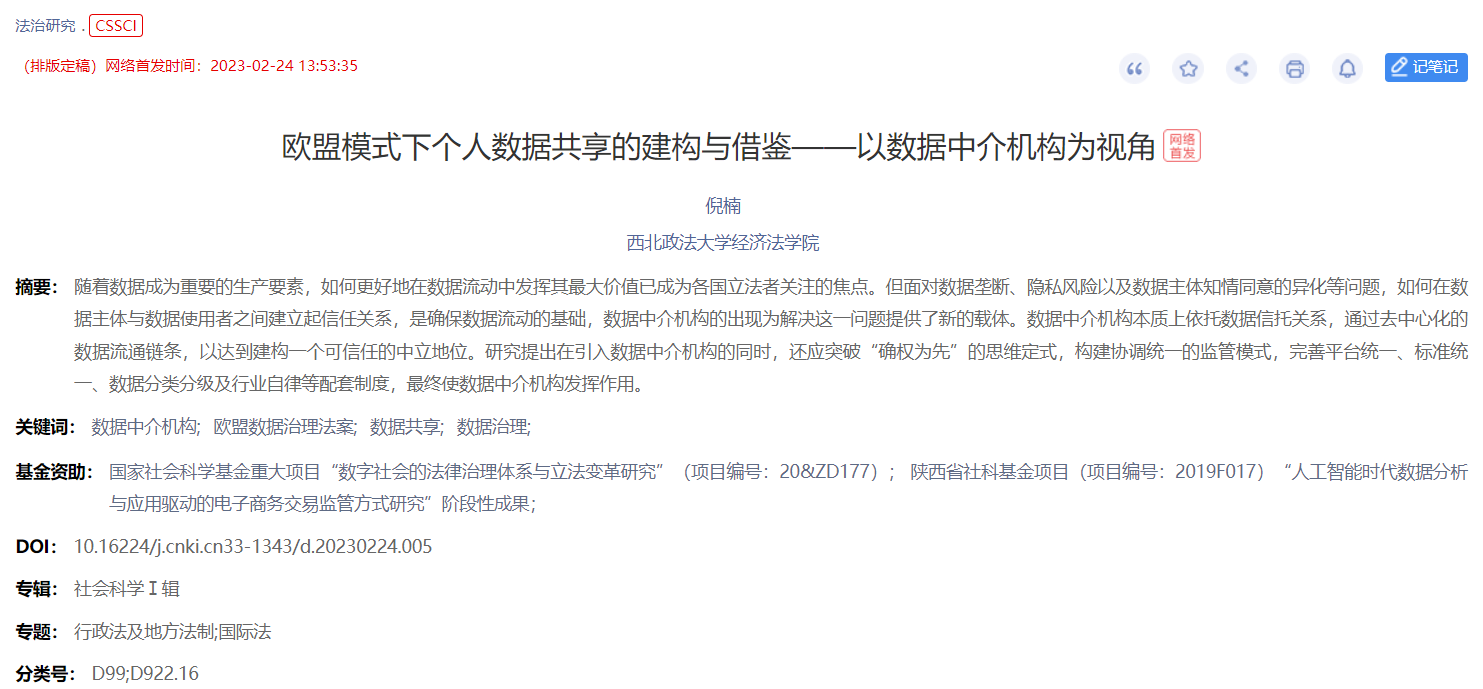【法治研究】倪楠:欧盟模式下个人数据共享的建构与借鉴——以数据中介机构为视角