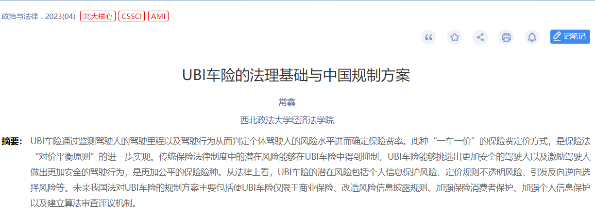 【政治与法律】常鑫:UBI车险的法理基础与中国规制方案