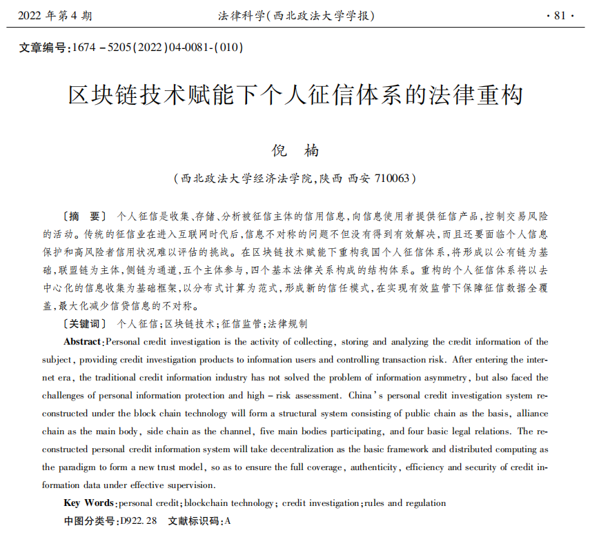 区块链技术赋能下个人征信体系的法律重构.pdf