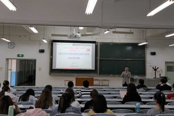 5月14日早8点至10点举办的专题学术讲座—“城市污水处理设施运营中存在的法律问题”作为本次系列活动的第一项启动活动,由环保法教研室党支部与本科生第三党支部、第四党支部联合组织开展。目的是为了激发学生关注环境问题、学习环境法律知识的学术热情并营造良好的学术风气。本场讲座由成人直播