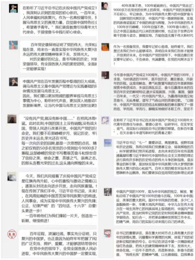通过本次交流学习,支部的各位成员收获颇丰。大家学习到,一百年前,在苦难深重的中国,中国共产党诞生了100年的风雨历程,100年的光辉灿烂,使我们的党成为中国先进的工人阶级的先锋队,同时是中国人民和中华民族的先锋队;同时也领悟到,作为一名预备党员,自己要牢记初心易得,始终难守;认识到百年党史雄辩地证明了党的伟大、光荣和正确,深刻昭示我们战胜挑战、赢得胜利的关键在党,中国共产党过去是、现在是、将来也一直是实现中华民族伟大复兴的根本保证;更加感悟到,中国共产党在百年发展历程中取得的巨大成就,从国家发展的角度看,意味着中国共产党面临着更大的挑战和责任,因此,我们要以更加宽阔的眼界审视马克思主义在当代发展的现实基础和实践需要,不断开辟21世纪马克思主义发展新境界,让当代中国马克思主义放射出更加灿烂的真理光芒。